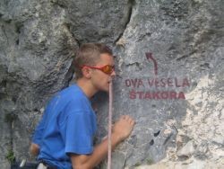 Smer je procenjena kao 5+. Mnogo je teža ali i gluba. Pukotina sa problemom 7-, a onda polica pa mali problem 6, a na zadnjem kopčanju zemlje i drvo. Baš shit. |